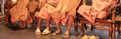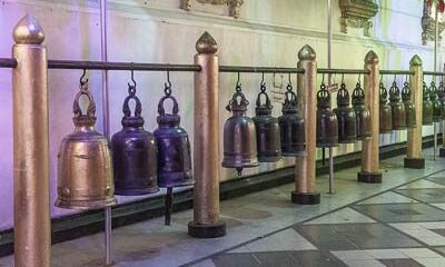 At the top, the path is lined with bells. Very young monks are waiting. For what? Chen explains, I miss it