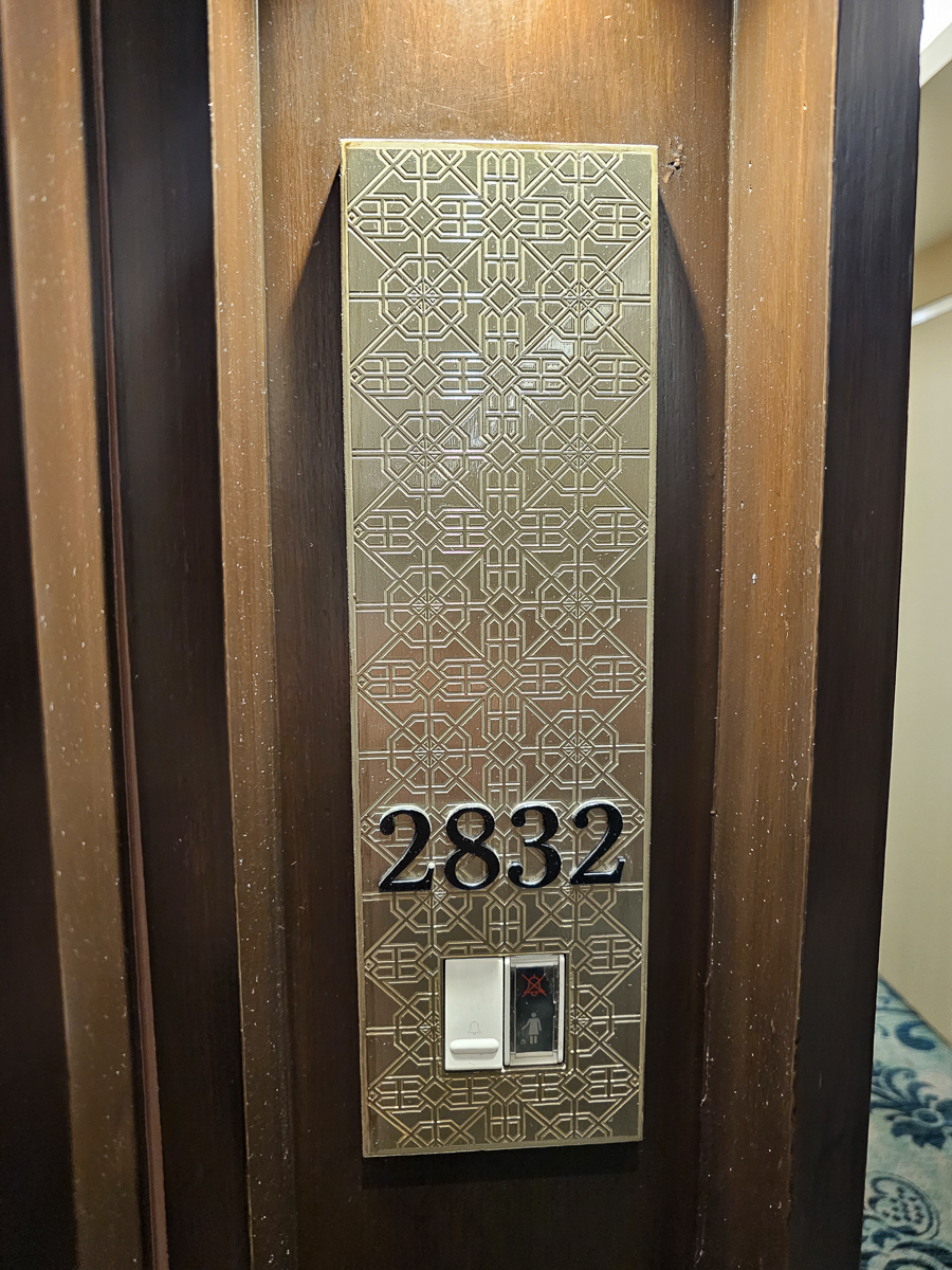 The hotel was incredibly modern and lovely. Some details caught my eye, and I had to photograph them. Number 2832 was our room number, and you can see the care put into such a minor detail. The spools of thread were part of a sculpture in the lobby; the thread had such a sheen that I thought it had to be silk. I took a copy of the drinks menu, which was quite impressive. A travel agency representative met us after dinner to give us a cell phone and explain the details of the trip.