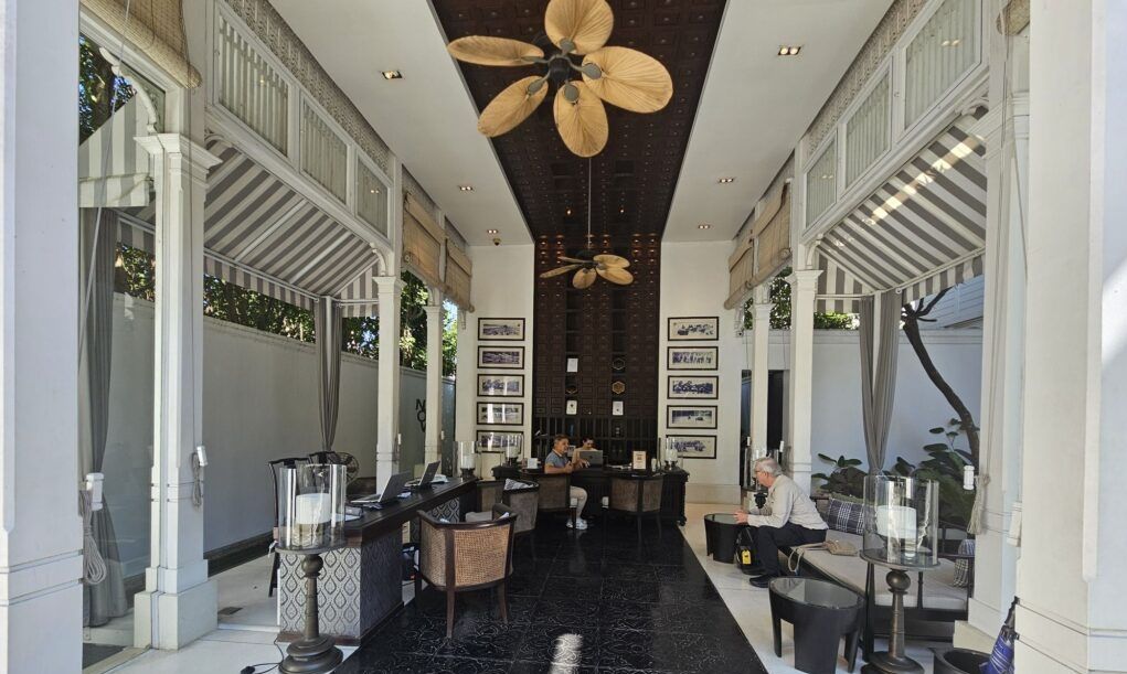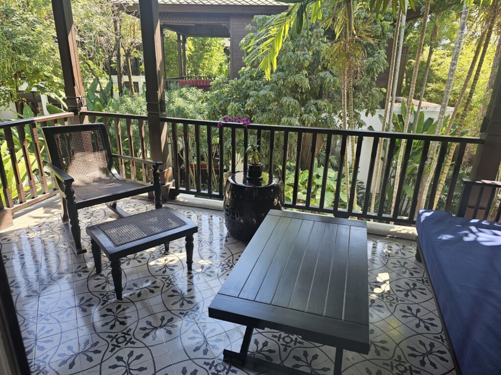 After 30 + hours in transit, it was nice to get to our hotel . And the hotel is lovely. Checking into our hotel in Chiang Mai and our balcony off our room. We even have an outside shower off our room!